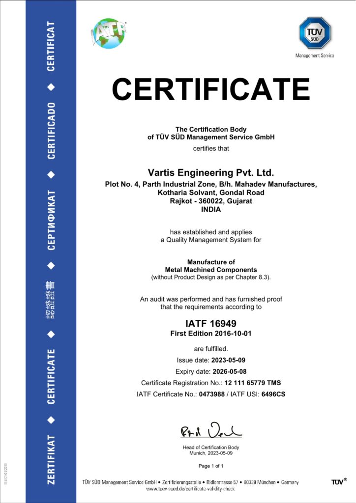 The Vartis Engeneering – is a marketing subsidiary for own products & representation for few well-selected Indian manufacturing units. We have a good knowledge + experience for quality systems & supervised manufacturing outsourcing from Local Rajkot-Gujarat based manufacturers at India.